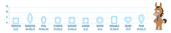 | Asscher | 5.3 x 5.3 |