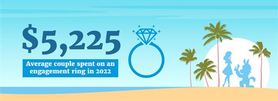 The average couple spent $5,225 on an engagement ring in 2022. Breaking it down, 19% spent less than $1,000. Twenty-nine percent of couples spent between $2,000 and $5,000, while 9% spent over $10,000.