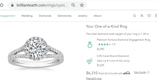 Costco vs Brilliant Earth (Platinum Halo Ring)