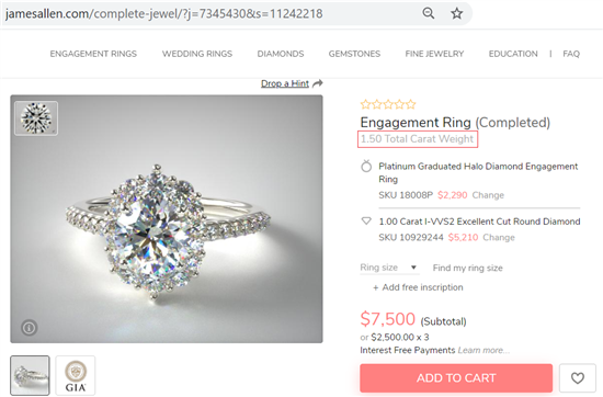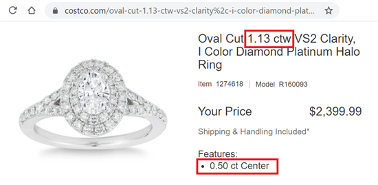 Costco does this tricky thing in the diamond ring description. They'll write the total carat weight instead of the carat weight of the center stone.