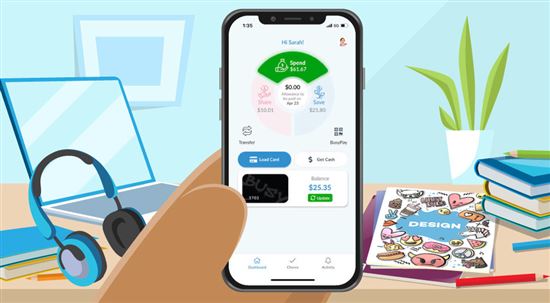 Parents can set an automated allowance for their kid, assign chores and payments for each completed chore, and can choose from 10 attractive card designs.
