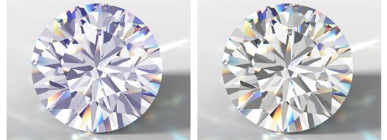In the above example, the diamond on the left has a strong fluorescence. For comparison, I've placed a diamond with no fluorescence next to it. But keep in mind that this level of haziness is a rare case.