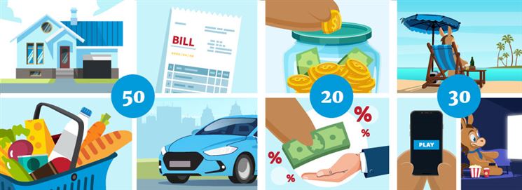 This calculator is based on the 50-20-30 Budgeting Rule. Here's how it works: