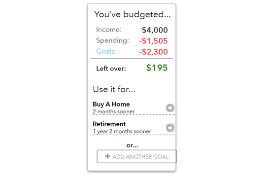 You can also budget expected income and Mint will track your income over the month. It tells you how much you will have left after your expenses and savings goals.