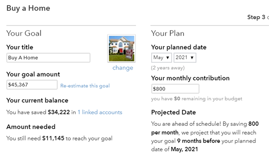 I find this feature a little glitchy sometimes. For example, it doesn't recognize that I've deposited money into the accounts toward the goals, so it still shows $0 this month (above screenshot).