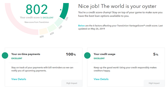 It also tells you the factors that affect your credit score, such as your on-time payments, credit usage, total accounts, credit inquiries, etc. This information is very helpful so you can monitor how you're doing and improve your credit.