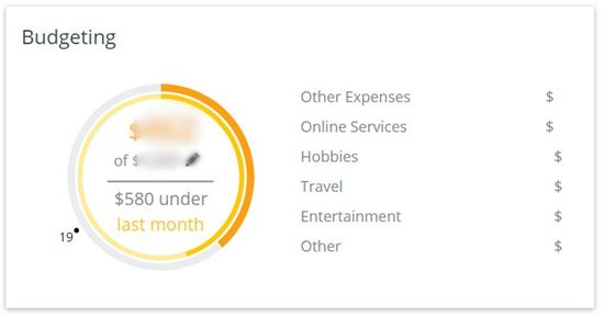 In comparison, Empower only offers very simple budgeting tools. You can only set an overall monthly budget. It'll track how much you've spent this month so far, and compare it to your spending last month. You can't assign a budget to each spending category or set other features.