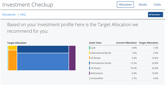 - Investment Checkup Tool. Analyzes your current investment strategy and suggest a target allocation. It also tells you exactly how to rebalance your portfolio to reach the suggested asset allocation.