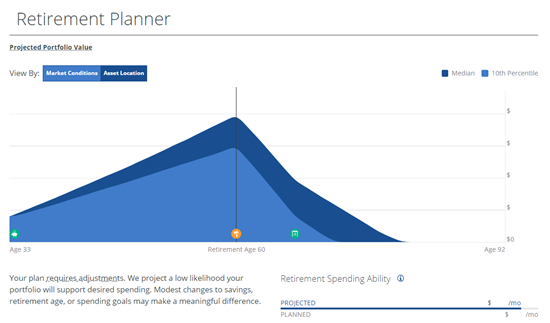 - Retirement planner—can add scenarios to see how they impact retirement