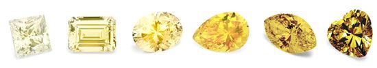 Yellow diamonds are graded on the intensity of the color. GIA assigns these fancy color grades for yellow diamonds (from left to right):